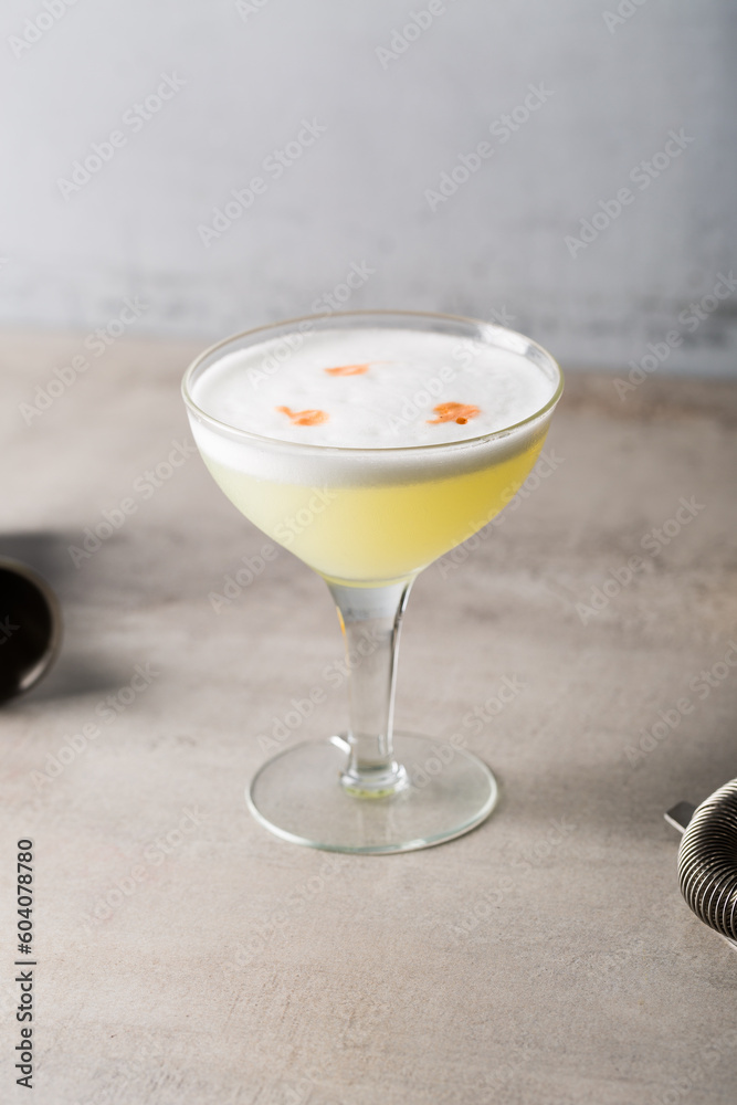 Pisco Sour Cocktail booze pisco, fresh lemon juice, syrup, egg white and aromatic bitters