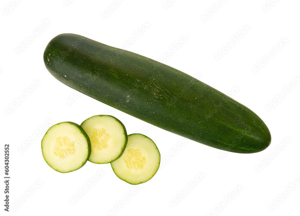 Whole and slice cucumber isolated. Vegetable design element