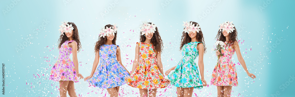 Abstract art collage of young woman with flowers