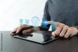 Student or businessperson learning or reading online class by tablet. Education knowledge and business studying course at home. Growth and success learn idea concept