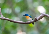 A Tickels Blue Flycatcher perched on a small branch inside the deep jungles of Thattekad, Kerala