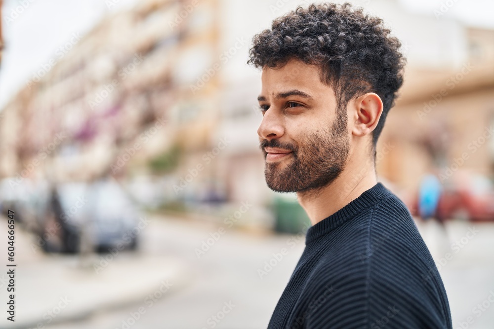 Young arab man smiling confident standing at street