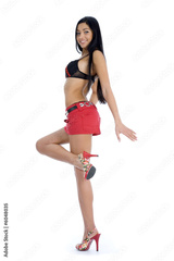 portrait of the brunette with blue eye on white background