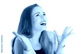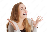 Beautiful positive and casual woman expressing surprise.