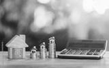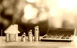 House is placed on the coins. The concept of calculation to buy a house. planning savings money of coins to buy a home concept for property, mortgage, real estate investment and savings to buy a home.