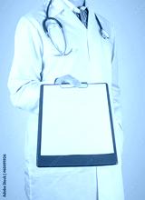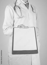 Doctor with clipboard, copyspace