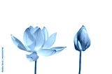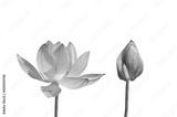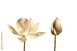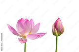 Beautiful bright pink Nelumbo lotus flower and bud on a white isolated background