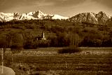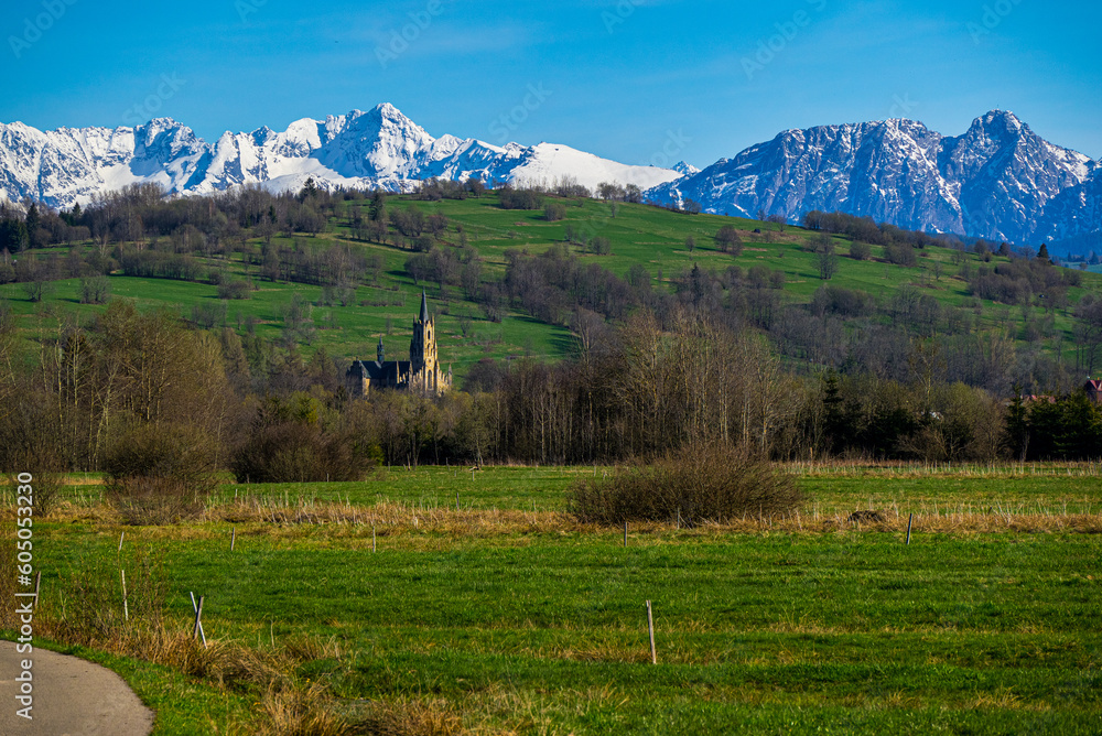 Panorama Tatr z Giewontem z trasy rowerowej w Chochołowie.