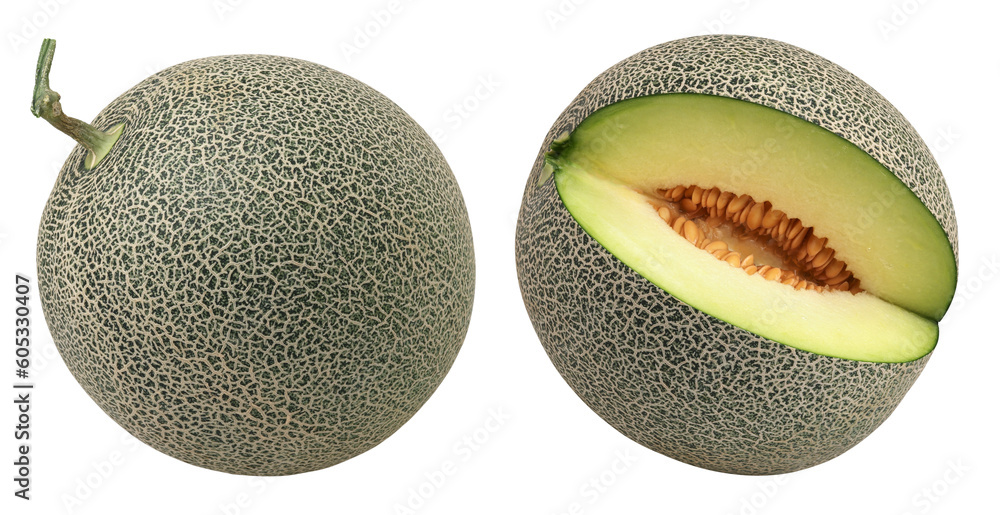 Sweet Green melon or cantaloupe half-isolated, transparent png, PNG format, cut-out