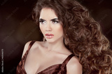 Wavy Hair. Beautiful Fashion Brunette Woman. Healthy Long Brown