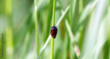 Cercopis vulnerata | Cercope sanguin ou cercope rouge sang aspirant la sève d'un brun d'herbe