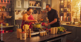 Indian Couple Exploring Traditional Cooking: Preserving Culinary Heritage, Preparing Authentic Recipes with Love and Care. Sharing Cultural Traditions in the Kitchen.