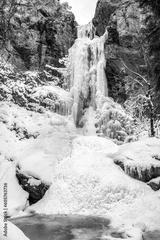 Frozen waterfall Cervene piesky in valley Prsiecka dolina in Slovakia