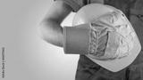 Workman wearing a glove holding a hardhat