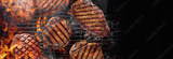 top view of the grill, juicy steaks are fried on the grill