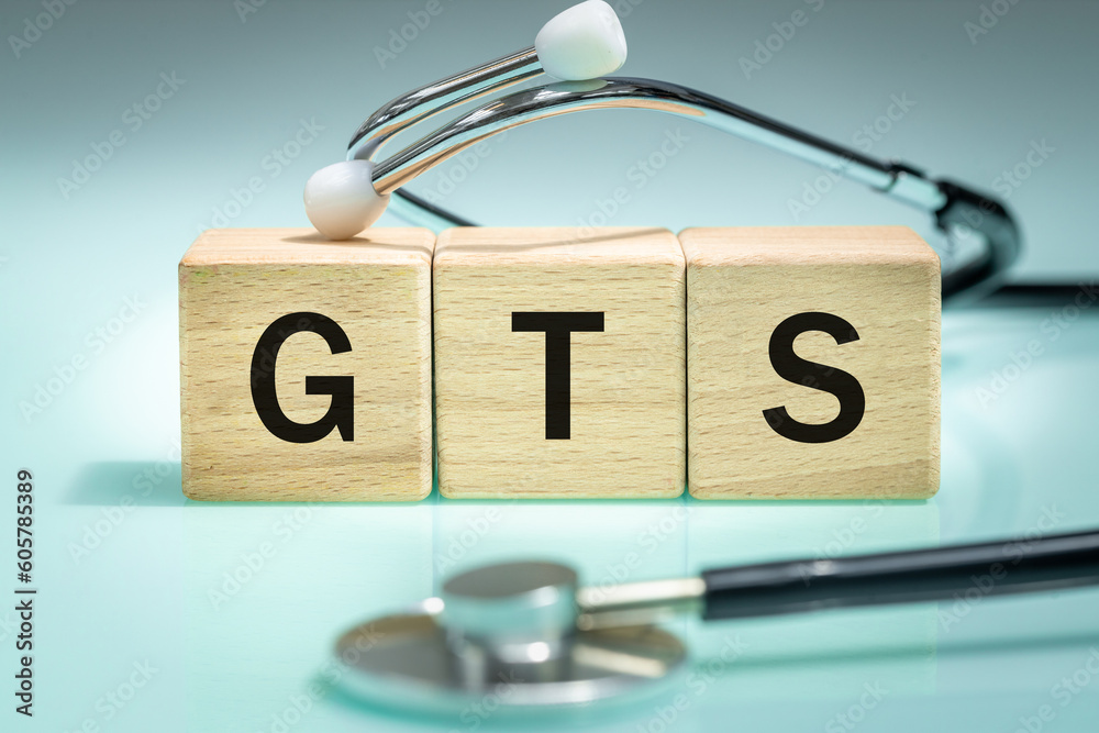 GTS, Gilles de la Tourette syndrome a neurodevelopmental disorder in children causing motor and vocal tics, Health concept, Rare disease symbol written on wooden blocks