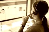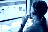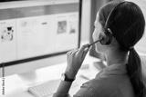 Call center, telemarketing and back of female consultant working on online consultation in the office. Customer service, contact us and saleswoman planning crm with headset and computer in workplace.