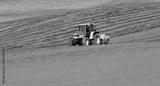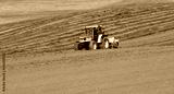 Bauer mit seinem Traktor auf einem Feld in Kärnten