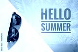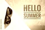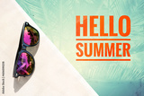 Hello summer banner with sunglasses, it's summer time