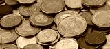 A pile of gold and silver coins.