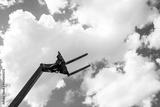 Metal tele handler with fork on blue sky background