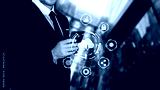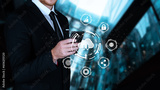 Cloud computing concept, businessman using mobile phone connecting to internet application technology and digital marketing, financial banking, digital tech, big data, cyber security, share data.
