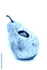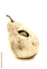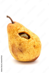 Worm eating Conference pear (Pyrus communis) isolated on the white background
