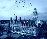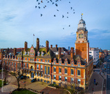 Aerial view of Leicester Town hall in Leicester, a city in England’s East Midlands region