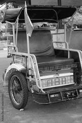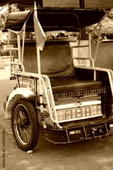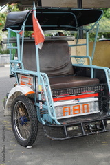 Surakarta, Indonesia -05 May 2023; Becak is a traditional means of transportation, tourist transportation which is still active in the city of Solo.
