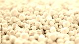 Ammonized superphosphate - gray and white mineral fertilizer close-up, top view. Gray and white background of ammoniated superphosphate, top view.