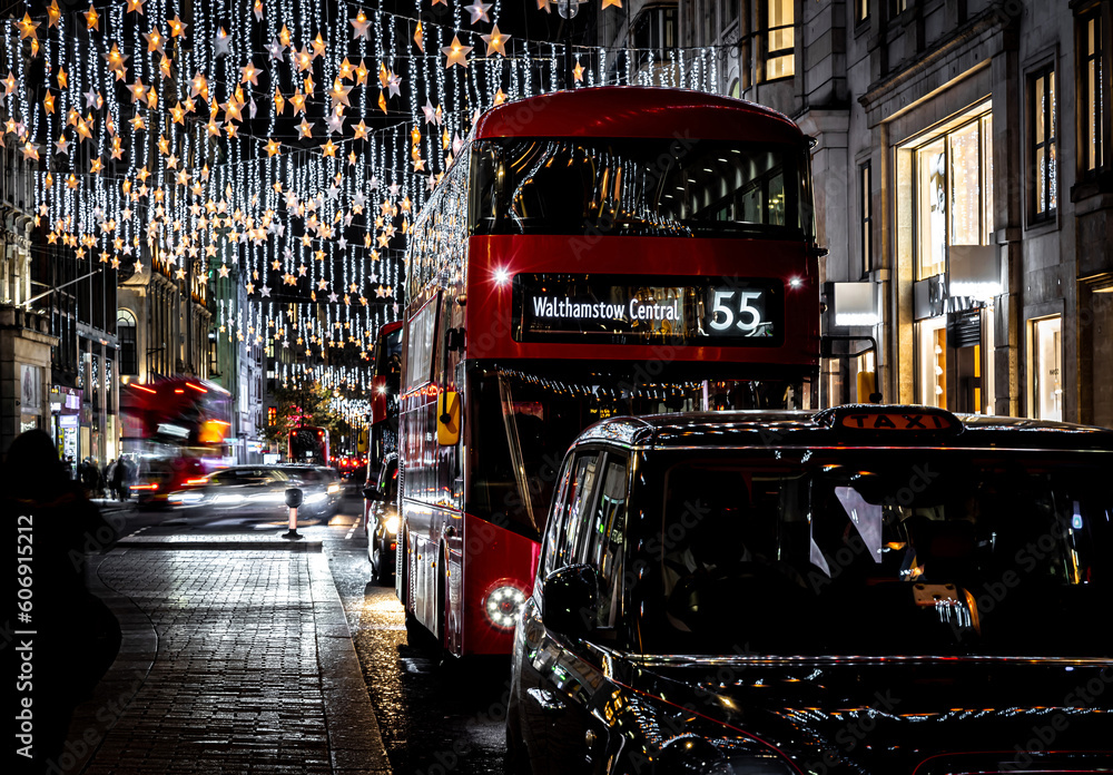 Dramatic view of the Oxford street in London at Christmas time