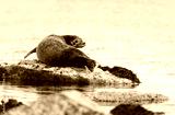 Common Seal lying on a rock in Lerwick harbour, Scotland