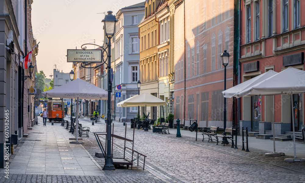Morning on Dluga Street in Old Town of Bydgoszcz