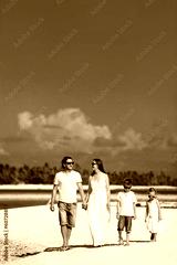 Family walking at beach