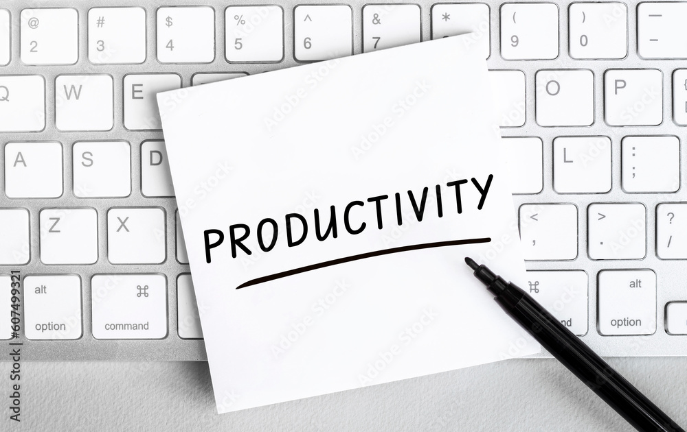 White paper with text productivity lying on the keyboard