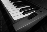 Keyboard synthesizer on a dark background. Electric piano close-up.