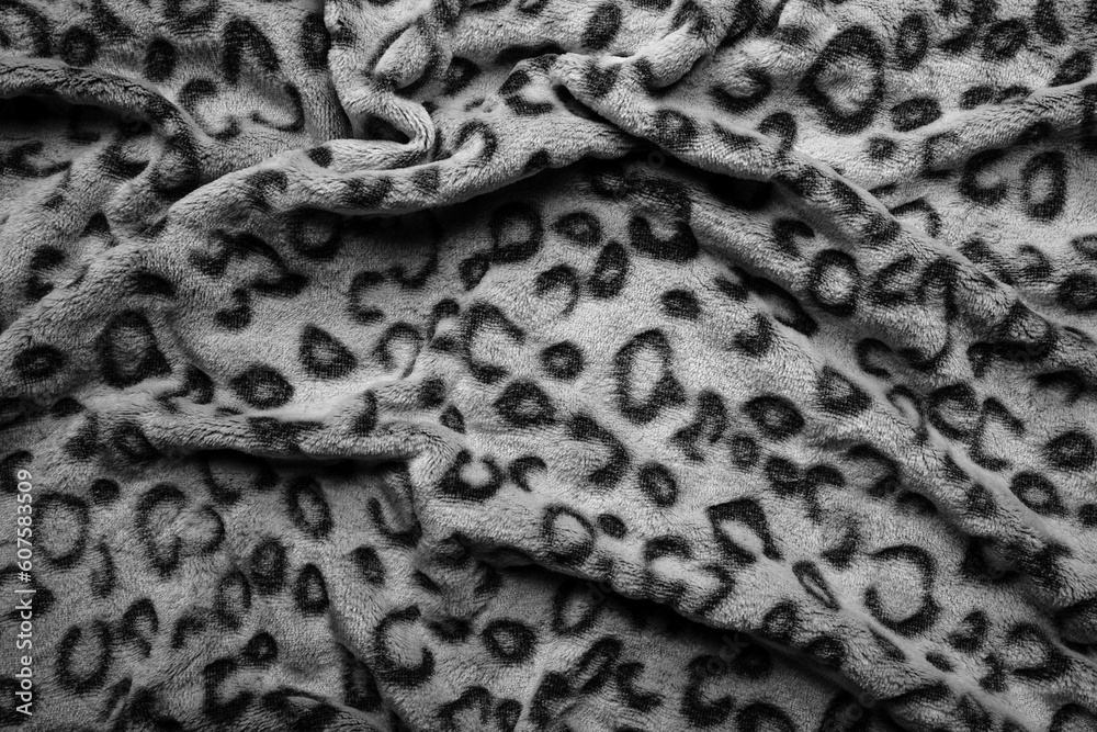 Soft fleecy faux fabric with a mottled pattern. Light leopard texture.