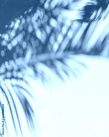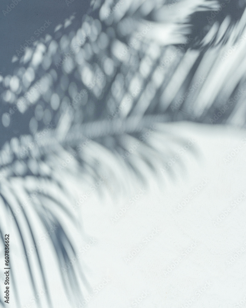 Blurred shadow of tropical palm leaves on gray wall background. Summer concept.