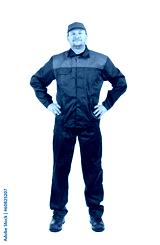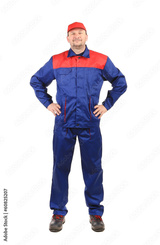 Worker inred-blue workwear.