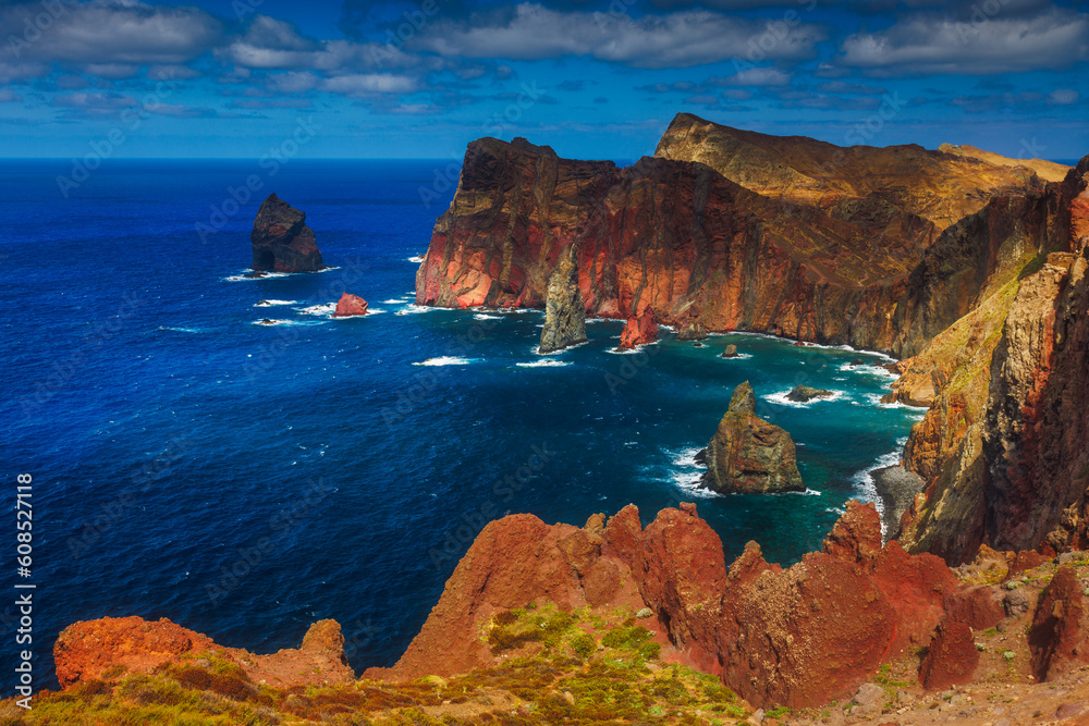 Volcanic sea cliffs of the Sao Lourenco peninsula, eastern Madeira, Portugal, Atlantic Ocean