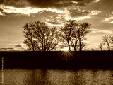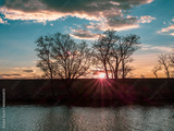 lake and trees at sunset time