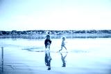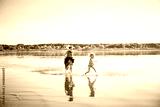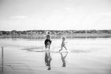 Mother and daughter have fun running in water with splashing. The state of happiness, freedom and independence. Strengthening parent child relationships, physical and psychological health in family