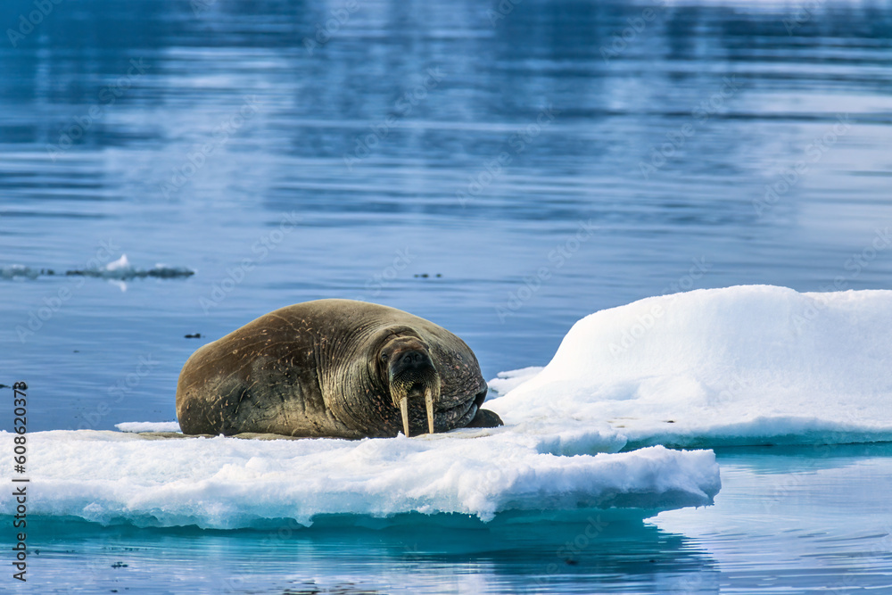 Melting ice floes with a Walrus in the arctic