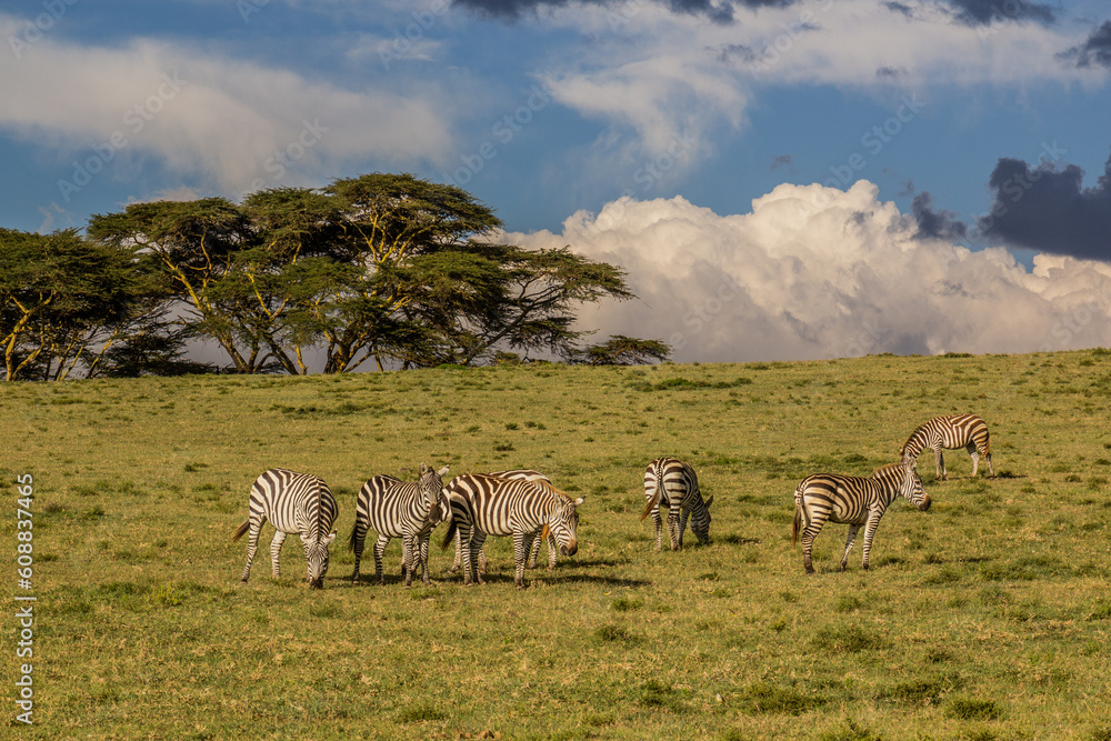 Burchell's zebras (Equus quagga burchellii) at Crescent Island Game Sanctuary on Naivasha lake, Kenya
