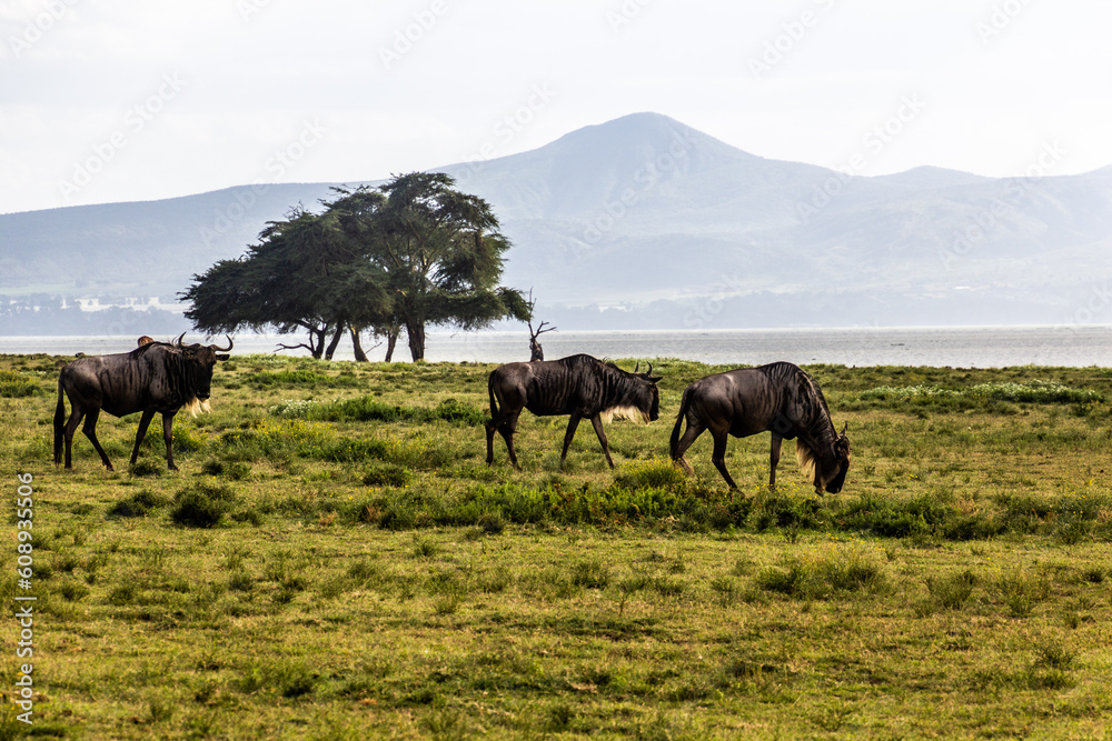 Wildebeest at Crescent Island Game Sanctuary on Naivasha lake, Kenya
