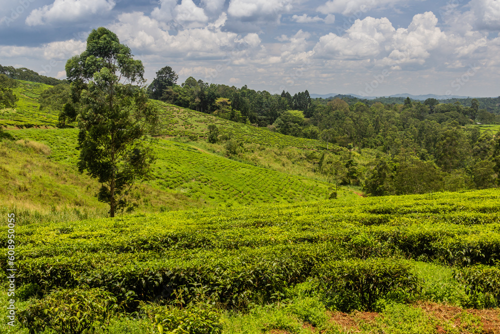 Tea plantations near Rweetera village in the crater lakes region near Fort Portal, Uganda