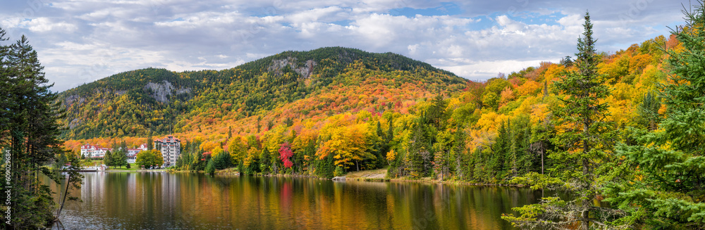 Dixville Notch State Park panorama in Autumn - New Hampshire - view of Lake Gloriette