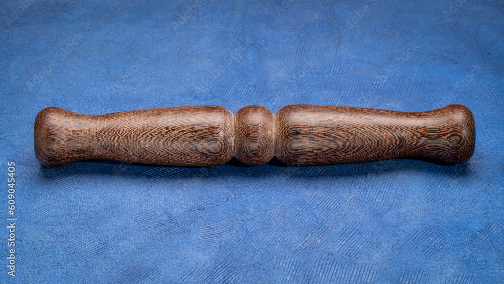 Wooden Tai Chi ruler, a traditional Chinese exercise tool, rests on textured paper, symbolizing tranquility and balance. Perfect for wellness and mindfulness themes.
