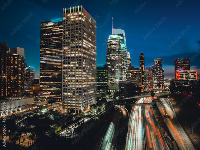 Los Angeles at night. Downtown LA night Los Angeles sunset skyline California.