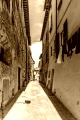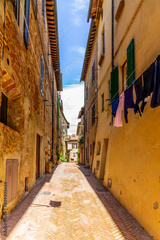The romantic narrow medieval alleys of Pienza in Tuscany